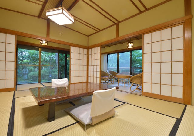 窓の外には四季の移ろいを映し出す日本庭園の眺めをお楽しみください。