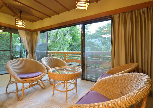 全て広々とした3間続きで源泉かけ流しの内風呂付き。