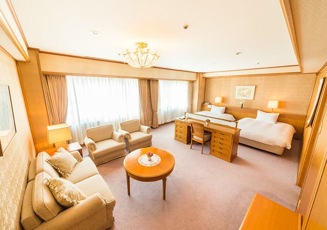 ホテル客室最上階の12階で広さ100.8平米のスイートルーム。隣接の高知城天守閣が一望出来ます。