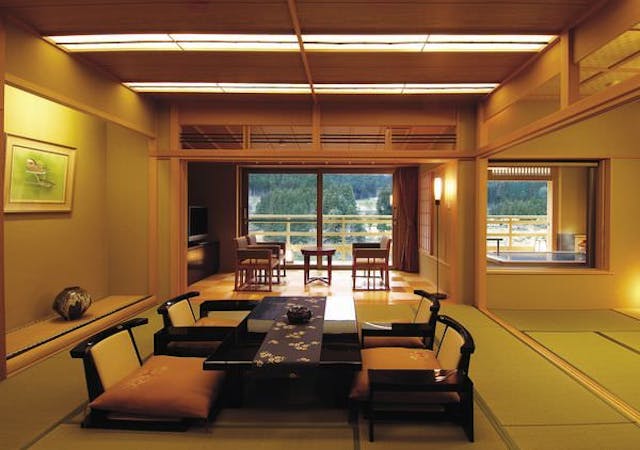 【広さ】12.5畳+6畳+広縁+半露天風呂+月見台