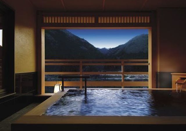 半露天風呂や各部屋の窓は全てゆったりサイズで大自然を間近に感じていただけます