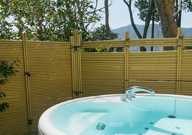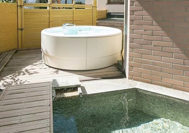 「ラグジュアリースイート」専用スペース内(お部屋の中にはございません)にジャグジーの露天風呂も備え、別荘感覚でお寛ぎいただけます。