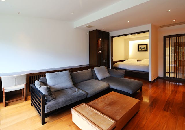 美景を望む戸外感たっぷりの展望露天風呂、洗練された落ち着く和室は独立し、リビングと間仕切りもできる