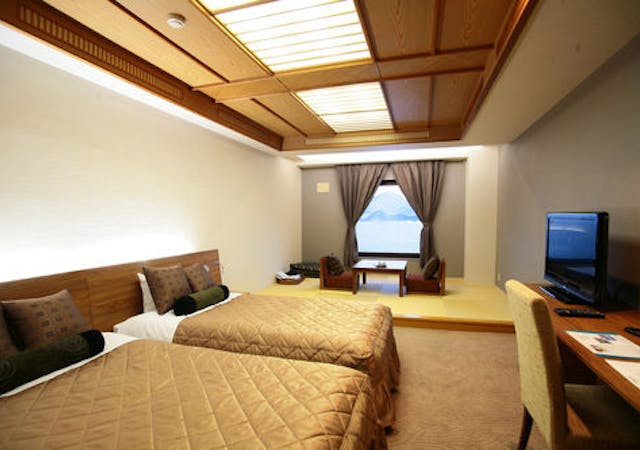 2名はお布団で、2名はベッドで・・というお布団とベッドとどちらも利用されたいご家族やグループ向けのお部屋です。