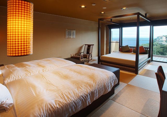 床は琉球畳、ベッドはセミダブルツイン、そしてゆったりくつろげる大きなデイベッドが特徴の和モダンなお部屋です。