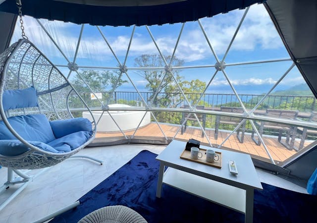 機密性・居住性など、ホテルのスイートルーム並みに快適な直径6mのデラックスドームテントタイプ。