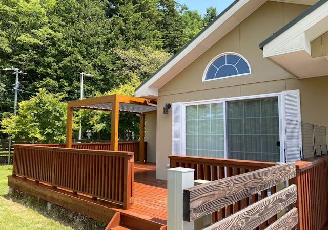 ・ウッドデッキの一部に屋根がついているので、雨が降っても外でBBQができます。
