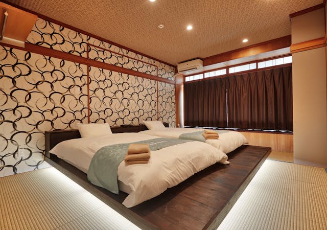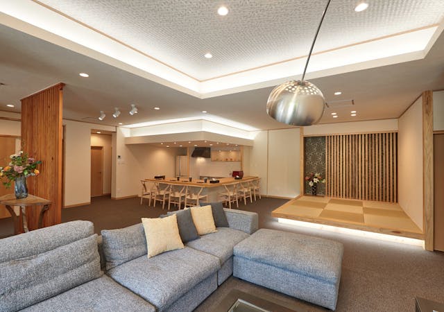 和をモチーフにしたおしゃれなインテリアと、落ち着きのある空間。
