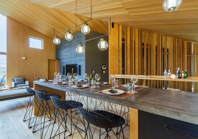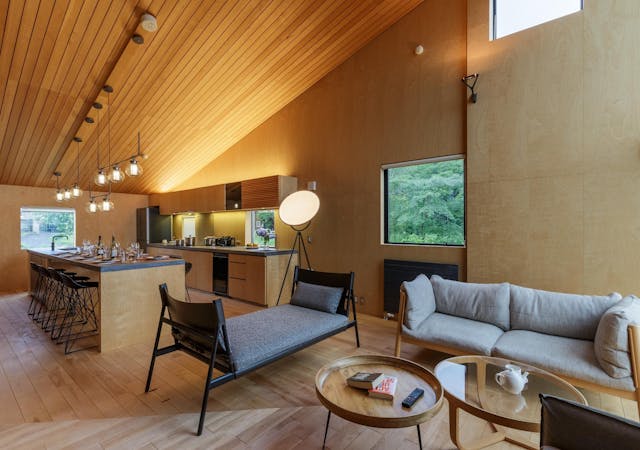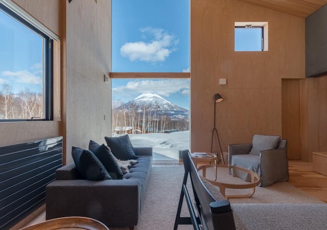 2階の広々としたリビングキッチンからは羊蹄山とニセコの自然が一望できます。夏はさわやかな風と鳥のさえずりが聞こえる特別なプライベート空間です。
