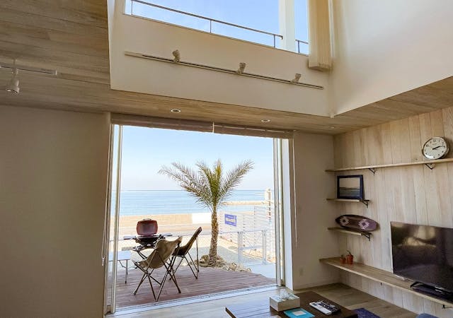 開放感抜群。テラスではガスコンロでBBQも可能。