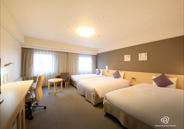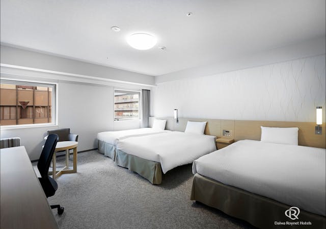 セミダブルベッドが2台にスタッキングベッドをもう1台設置