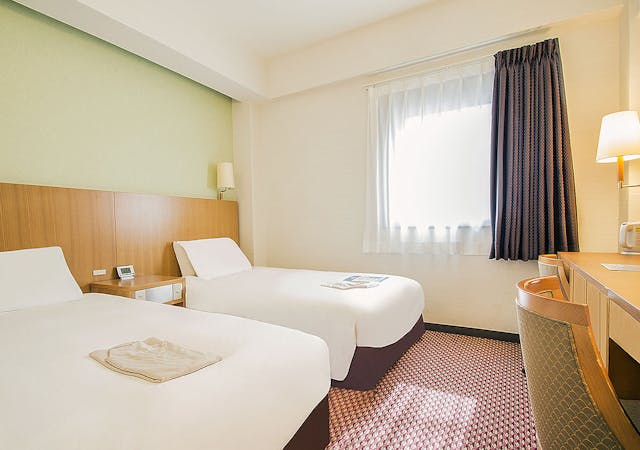 ●広さ「本館」約15.7 ~ 20.6平米・「別館」約15.3 ~ 20.5平米。110センチ幅ベッド(シモンズ社製)を設置したツインルーム
